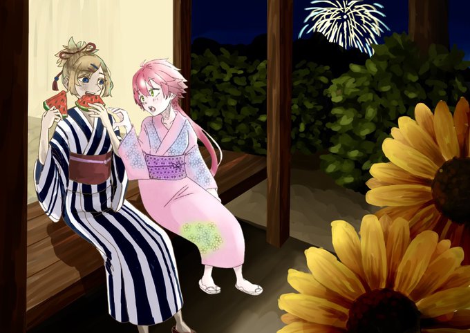 4 13 #コンパスお絵描き けふさん(@ans_be )の合作にキララで参加させて頂きました☺️ スイカは後でいっこ奪いました 21/09/14 18:12