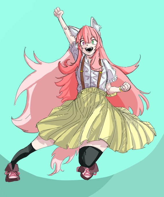 #5つのお題でなんか描こうぜ ・ロングヘア ・オッドアイ ・スカート ・おとこの娘 ・ケモ耳 ほかのみんなの作品えんぐいです、ぜひタグで見てみてください!!!