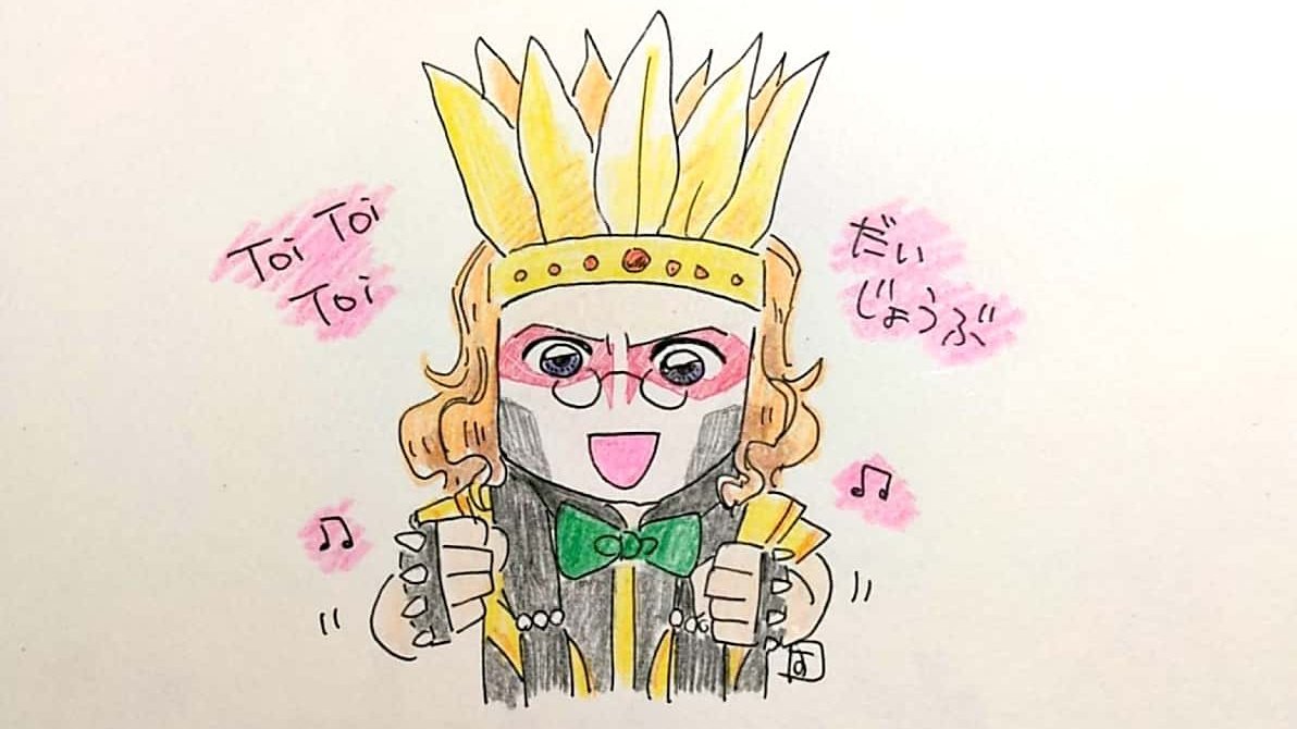 11 46 恥ずかしながら、閣下の歌はToi Toi Toiしか知らないのですが、Eテレ(0655)という共通点と、歌の内容がレゲシュっぽくもあるので、描いてみました。 #魔王道 19/02/24 19:34