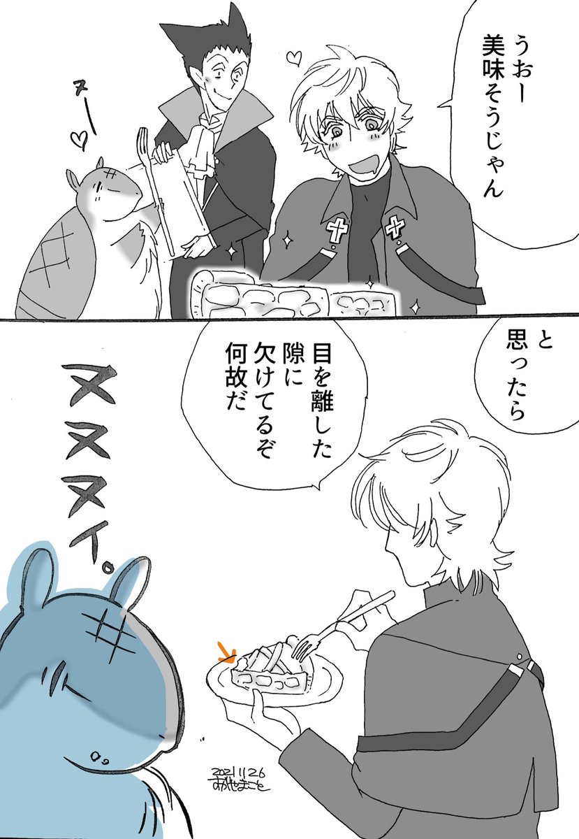 14 81 #吸死版60分一本勝負 お題「アニメ7話8話の登場人物」より 超絶に美味しそうなアップルパイと、ジョンの「ヌヌヌイ」 (ヌヌヌイ、吹き出して笑ってしまった…大好き) 21/11/26 22:10