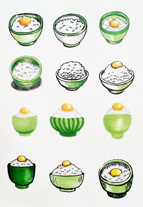 #1Day1ArtChallenge Day6วาดชามสีหยกใส่ข้าว จะได้เอาไปใช้เป็นปกนิยาย #แฝดคู่นี้ไม่เลี้ยงผมตาย ใครชอบอันไหนเป็นพิเศษบ้าง? เราชอบชาม3แถว 1 2 4 I need to pick one out to use as my web novel cover art. I personally prefer 3rd bowl on row 1 2 4 What about you? #art #inktober #sketchbook