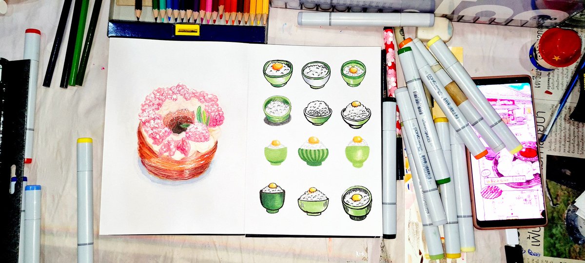 #1day1artchallenge Day 109 วันนี้ได้วาดจากบ้านแล้ว~ แฮปปี้มากที่อาทิตย์นี้ไม่ต้องอยู่ค้างทำงานต่อ Finally I get to return home to draw from my table 🥳 #drawings #art #Artworks #colorful #doodle #inktober2021 #inkdrawing @MujiThailand #sketchbook