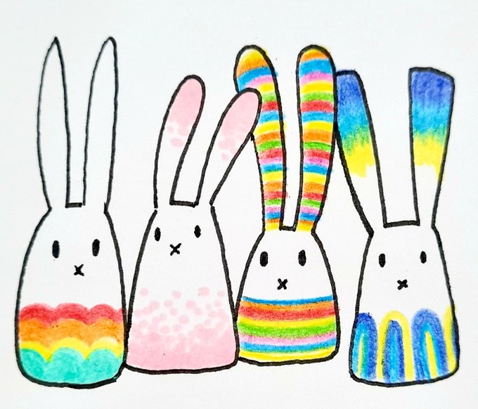 #1day1artchallenge Day18เราชอบทรงรุ่นนี้มาก เรียบๆน่ารักๆ เล่นลายได้เยอะ Continue with #bunny #characterdesign I 💜 these #simple #cute bodyshape as I can play around with varieties of #colourful #pattern #art #sketchbook #inktober2021 #colorpencil #colormarkers @COPIC_Official