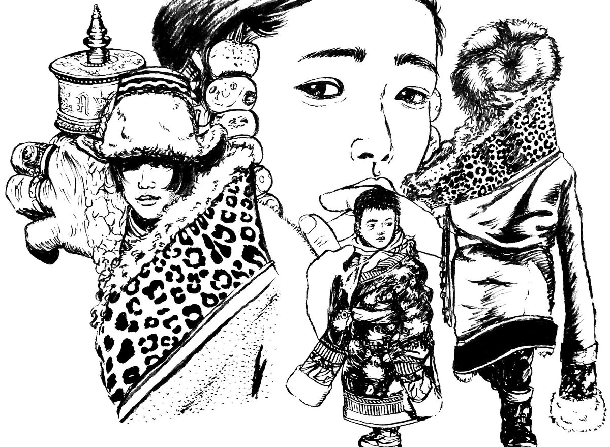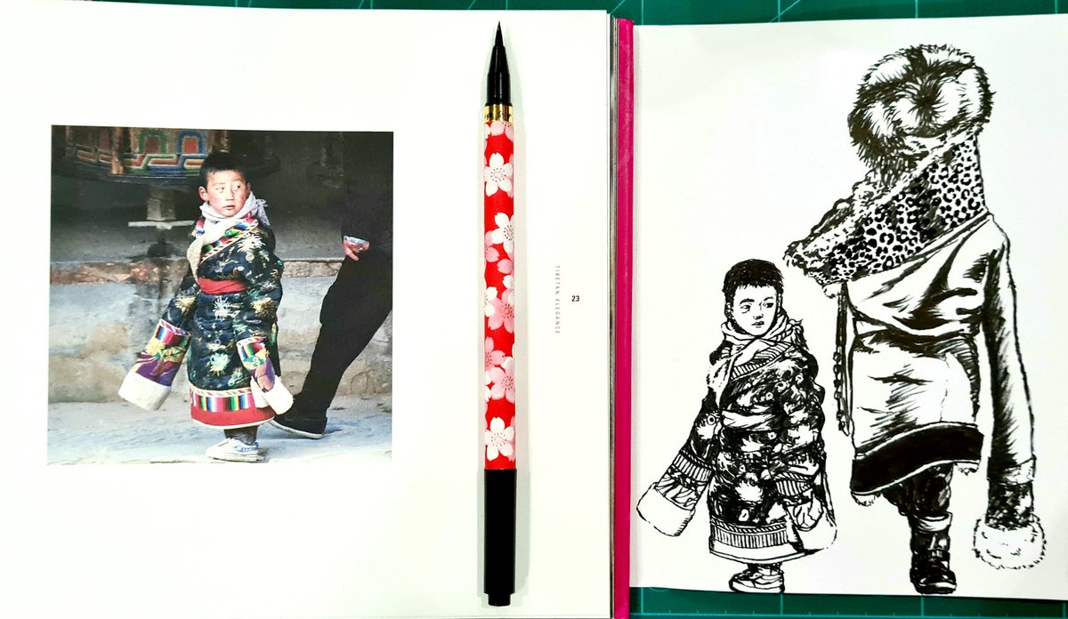 #1day1artchallenge Day 37 หน้าDay07-08ดูโล่ง เลยวาดเพิ่ม วาดหนุ่มๆไปแล้ว คราวนี้ถึงตาหนุ่มน้อยบ้าง Day07-08 I already draw men so I chose a #tibetan boy this time from 'TIBET STYLE' photobook by @YannYannromain #art #inktober #drawing #sketchbook