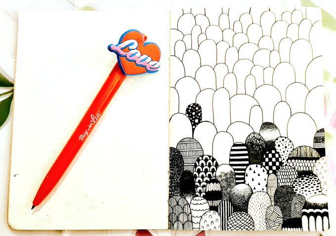 #1day1artchallenge Day 86 วาดเล่นนอกบ้าน อยากกลับไปแต่งนิยายต่อ⌨📚 #DOODLES while bored #art #artwork #sketchbook #INK #inktober @bts_bighit @BTS_twt #BoyWithLove merch pen