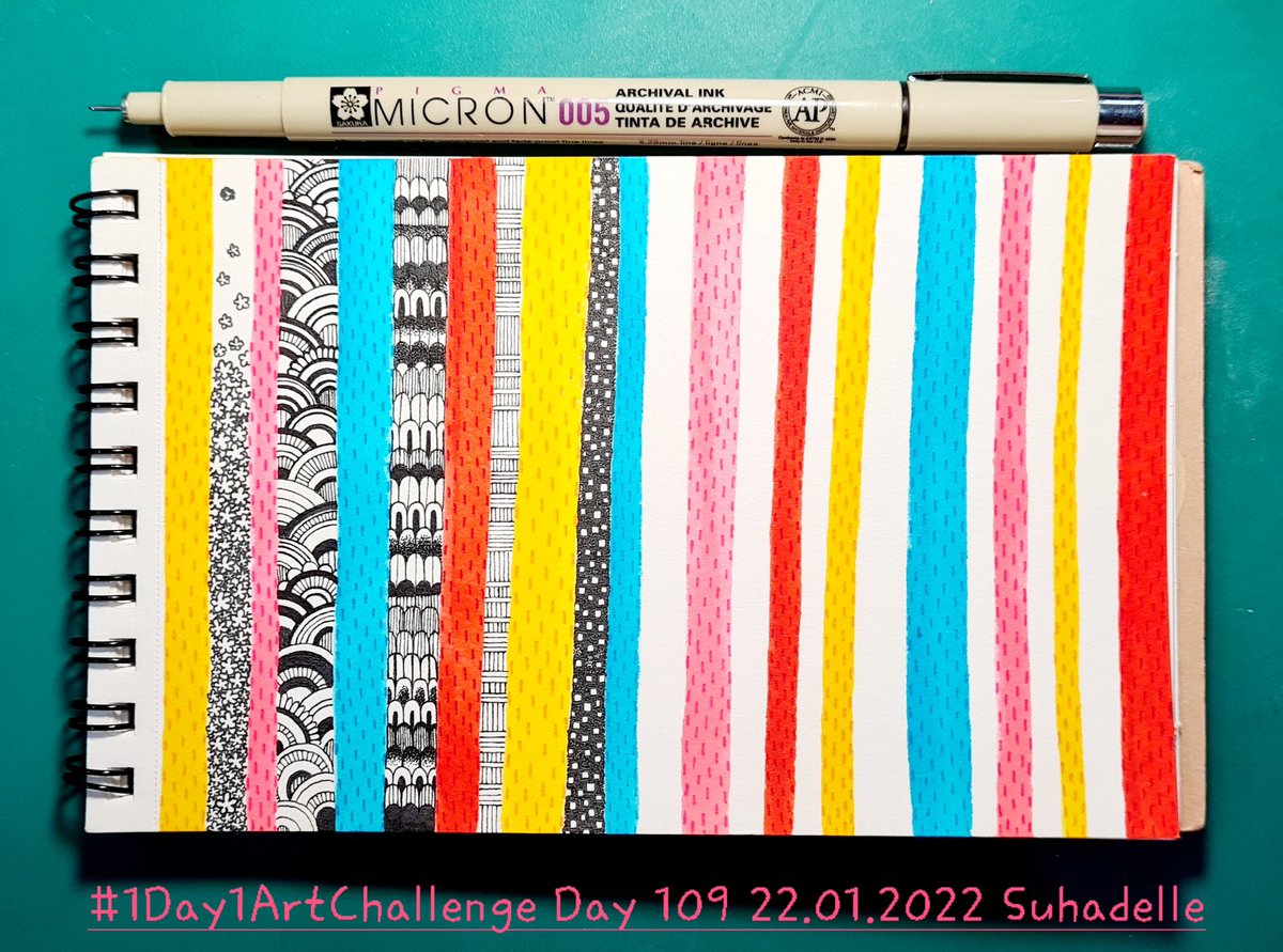 #1day1artchallenge Day40 หาโอกาสวาดระหว่างพัก ใช้ปากกาเมจิกมินิขนาดพกพาสะดวกวาดในสมุดของ @MujiThailand วาดเล่นๆคลายเครียด #drawing while having late lunch (5pm) using mini #colormarkers pen in my travel #sketchbook #inktober #art #colorful #pattern