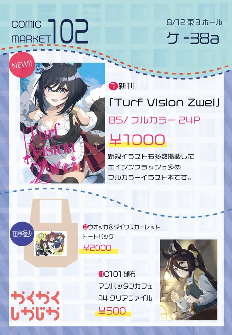 夏コミ1日目のお品書きです。当日追加でポストカードとか色紙とか持っていければと思いますが間に合わなかったらごめんなさい #C102お品書き #C102