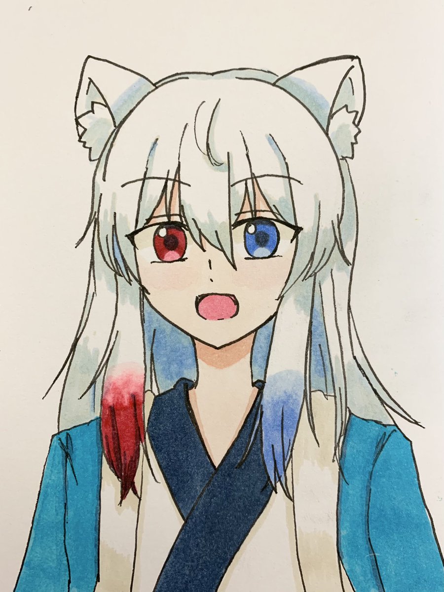 #イラスト #オリキャラ ハロウィンが近いのでそれっぽいものを描きました🎃 一応黒猫のつもりです