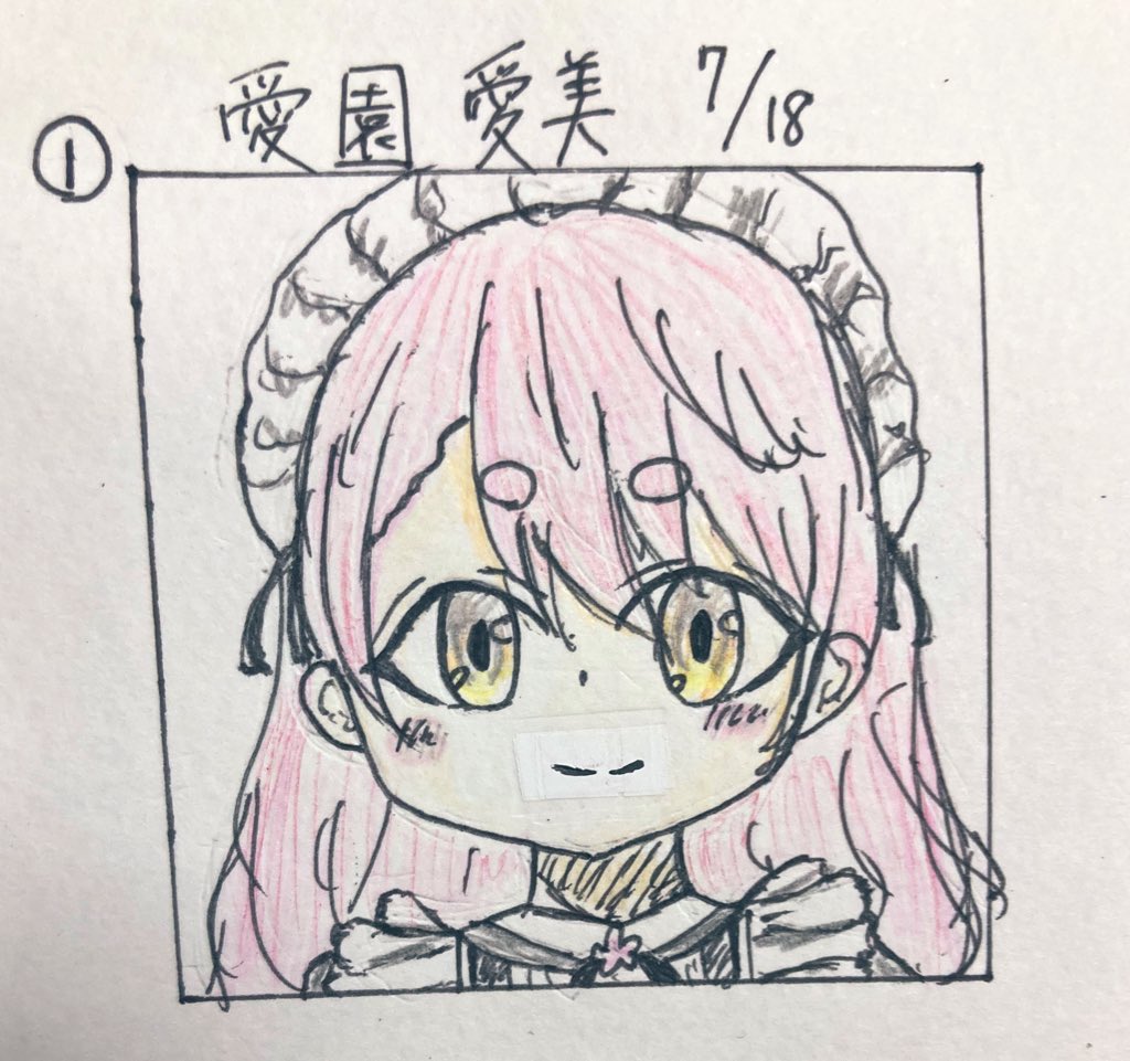 0 9 #にじさんじ五十音順に描いたら童田明治の時には画力上がってる説 1日目は愛園愛美さんです!! 修正テープごめんなさい🙏💦 続けられるように頑張ります😌 #愛美術館 22/07/18 23:46