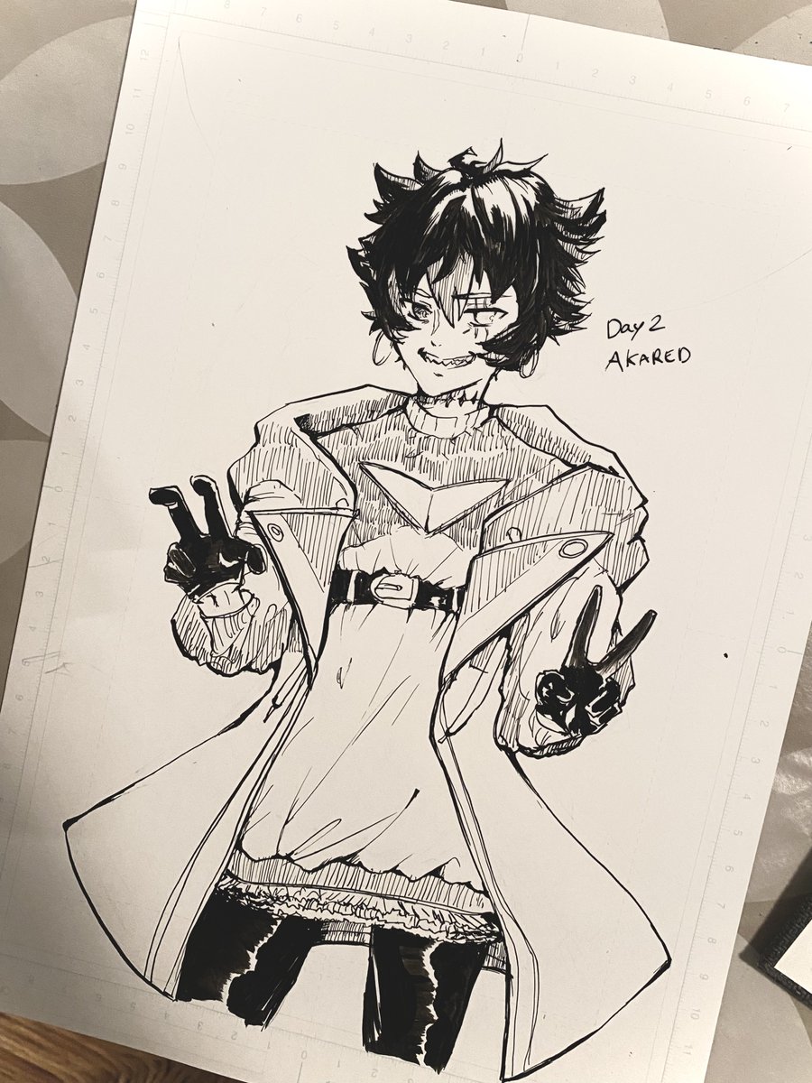 Je reviens peu a peu sur twitter! Voici mon jour 2 de #inktober2022 j'ai dessiné l'oc de mon amie @TABUNABU Akared! :3 (no list/pas de liste) Merci encore de m'avoir remonté le moral et tes petits tips!
