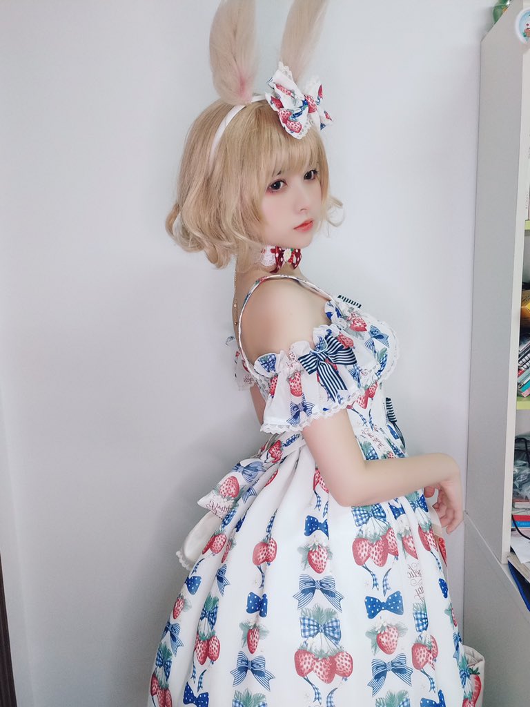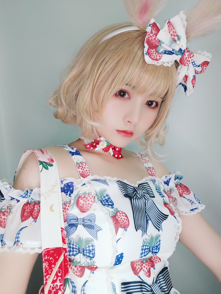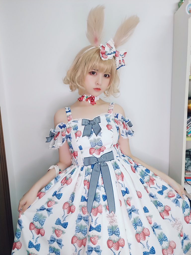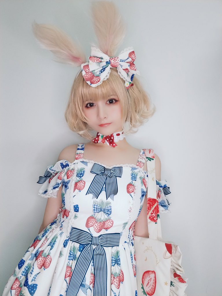 42 373 #Lolitafashion Ap 19草莓sp 好不容易买到了~ 大家都说是大白兔奶糖配色~搭了个兔耳朵~好配呀~ 裙子面料很适合夏天~是很清爽的一条小裙子 19/03/31 21:06