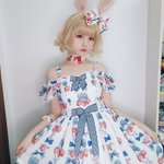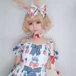 #Lolitafashion Ap 19草莓sp 好不容易买到了~ 大家都说是大白兔奶糖配色~搭了个兔耳朵~好配呀~ 裙子面料很适合夏天~是很清爽的一条小裙子
