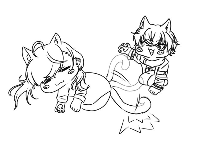 2 7 猫の日ということらしいので 疲れたので塗らないことにした 先住猫と新参の猫みたいなイメージ。 #猫の日 #密かな絵 #AlbanKnoxArt 23/02/22 23:54