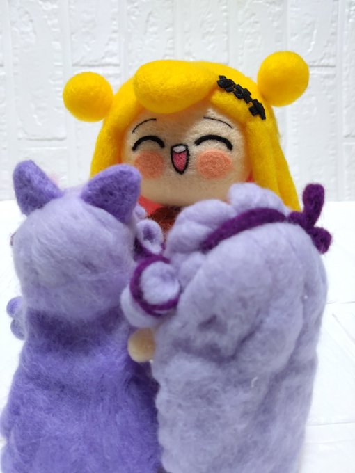 29 72 アニバ作品で、おミアに「アクスタはめればもっと良くなるんじゃない?🤔」と言われてやってみたら、サイズピッタリでした👏😳 ナイスアイデアありがとうですわ〜💜 #サロメ壱周年 #サロメ百万展 #羊毛フェルト 23/05/21 11:14