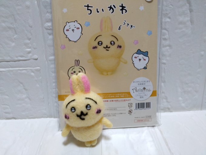 羊毛フェルトのちいかわで、うさぎできましたー🐰 ちょっと太ましいな😆 ハマナカ様、ありがとうございます🎵 #ちいかわファンアート #羊毛フェルト