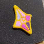いもけんぴ様のデザインされたジムバッジがどれもとても素晴らしく💯、即興ですがお嬢のジムバッジを羊毛フェルトで作成しました🐑(いもけんぴ様にご確認済み) 手持ちの材料で今回は作成しましたが、色を更に合わせてまた作りたいですね💪 #サロメ百万展 #羊毛フェルト twitter.com/1mokenpLogo/st…