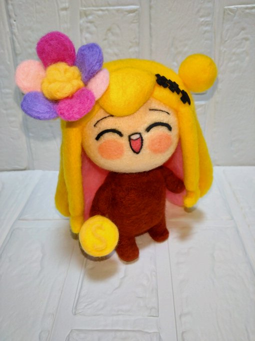 21 116 メカフィナにも羊毛フェルトのお花をあげる☺️ これからも、たくさんお金をたべるんだよ💰🪙💰 #Mecha_fyna #羊毛フェルト 23/04/19 21:48