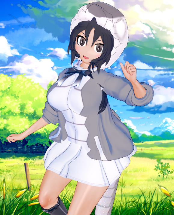 ニホンツキノワグマを配布します。 小柄ですが、他の熊フレンズと同じくらいの強い力を持っています。 性格は「正統派ヒロイン」に設定し、服装は黒い形に白い半月模様の服装で着せました。 ダウンロードは以下のツイートにあります。 #けものフレンズ #コイカツ