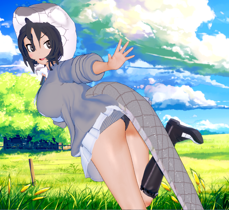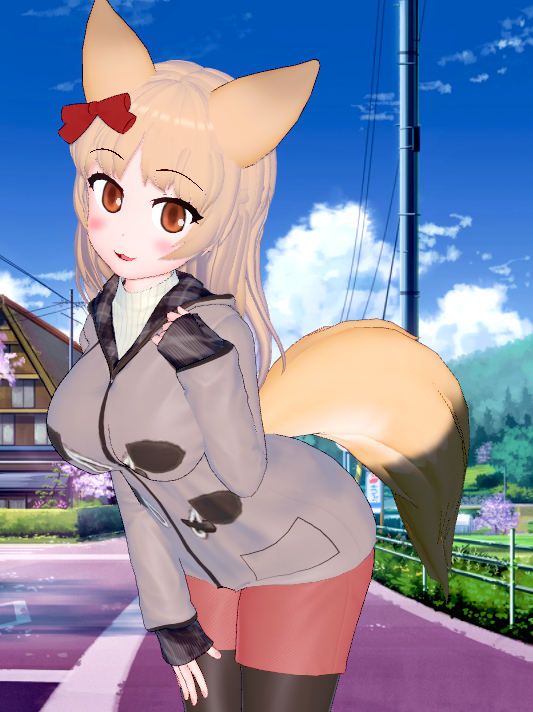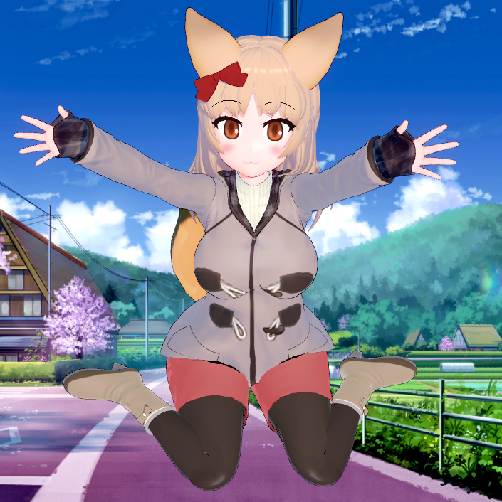 今日、オグロスナギツネ恒がけもフレ3に出て、さっそく私服を作ってみました。 真ん中がもう少し開いているパーカーがあればよかったのですが、なかったのでこのくらいにしました。