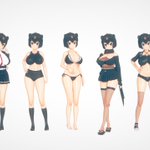 21 82 麒麟の別の服装を作ってみました。 左上から制服、水着、サークル服、室内服です。 22/10/24 11:00
