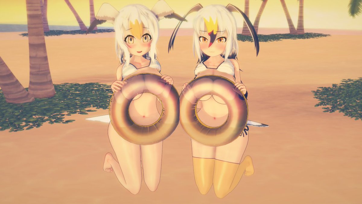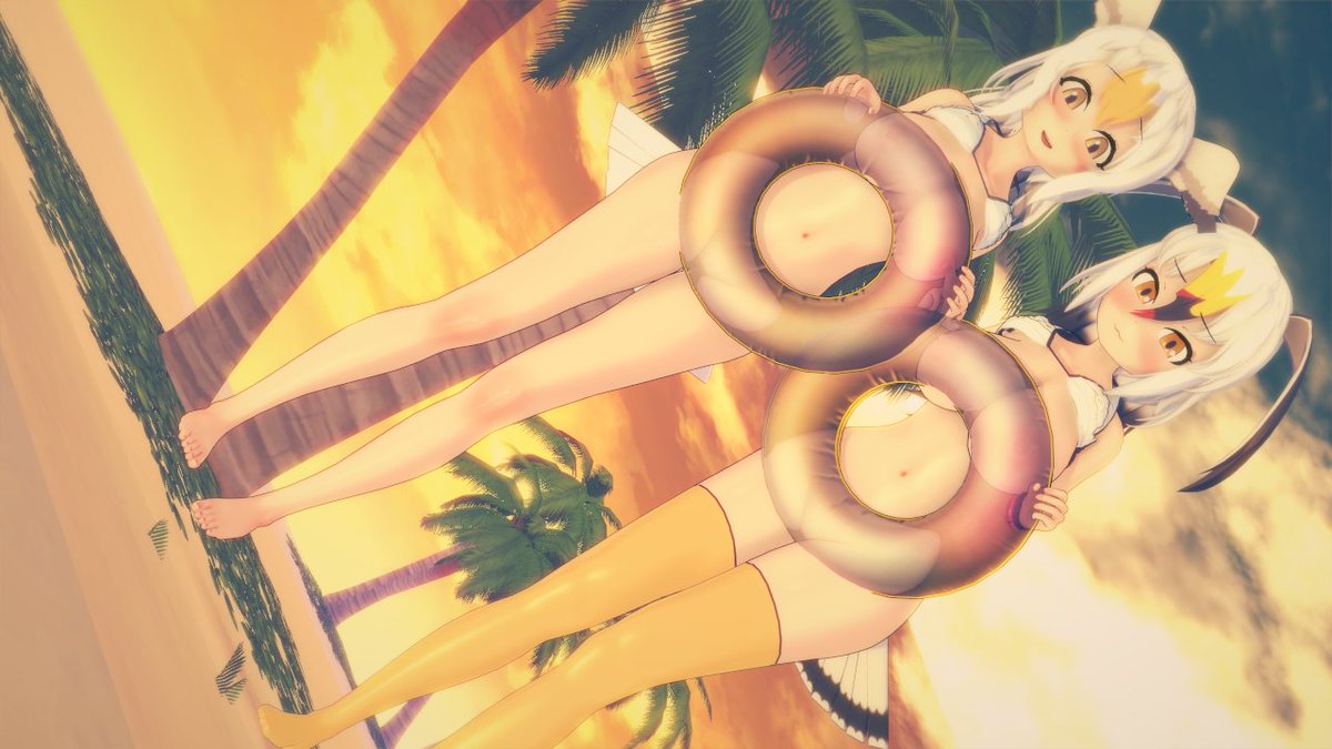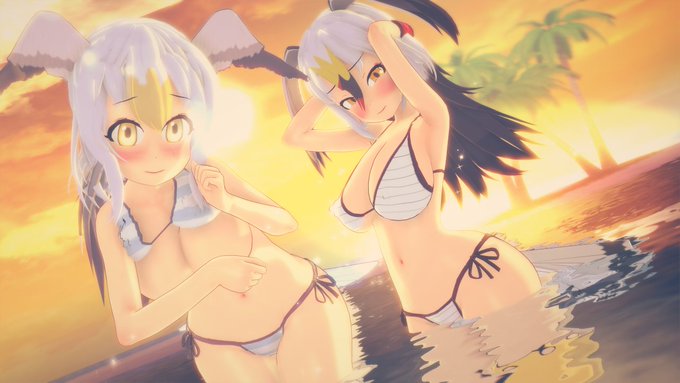 夕焼けの海で海鳥フレンズ同士🏝️🐦