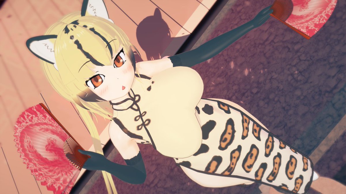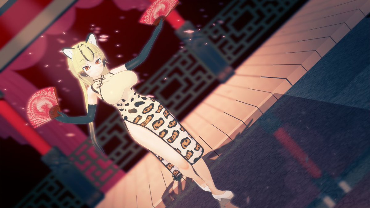 チャイナドレスを着て扇子踊りを踊るオセロットちゃん🐈💕