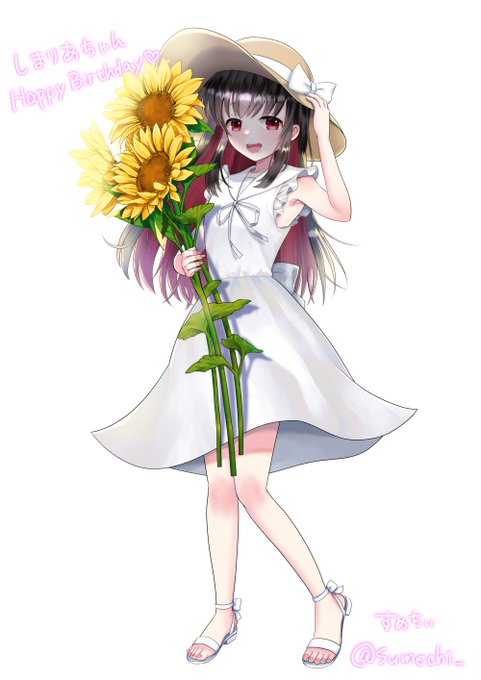 40 94 しまりあちゃん、お誕生日おめでとう🎉 skebでひまわり抱えた白ワンピースのしまりあちゃんリクエストで描かせていただきました🌻 夏苦手なしまりあちゃんだけど…きっと白ワンピースにあうよ! #志摩茉莉也 #温泉むすめ 23/02/22 20:27