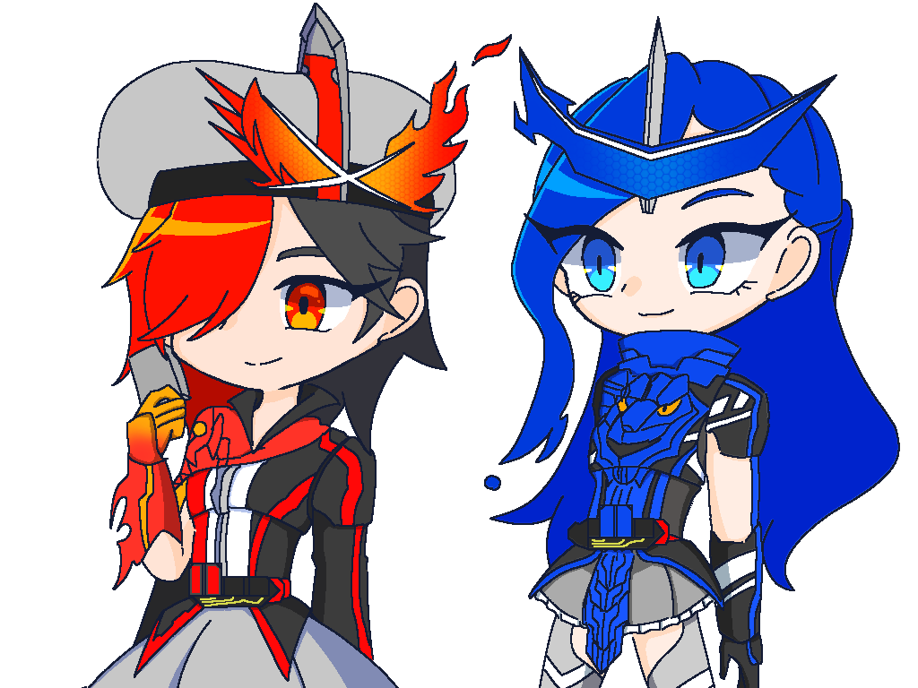 #今月描いた絵を晒そう #ライダー少女 1枚だけど3体描いたからセーフ(?)