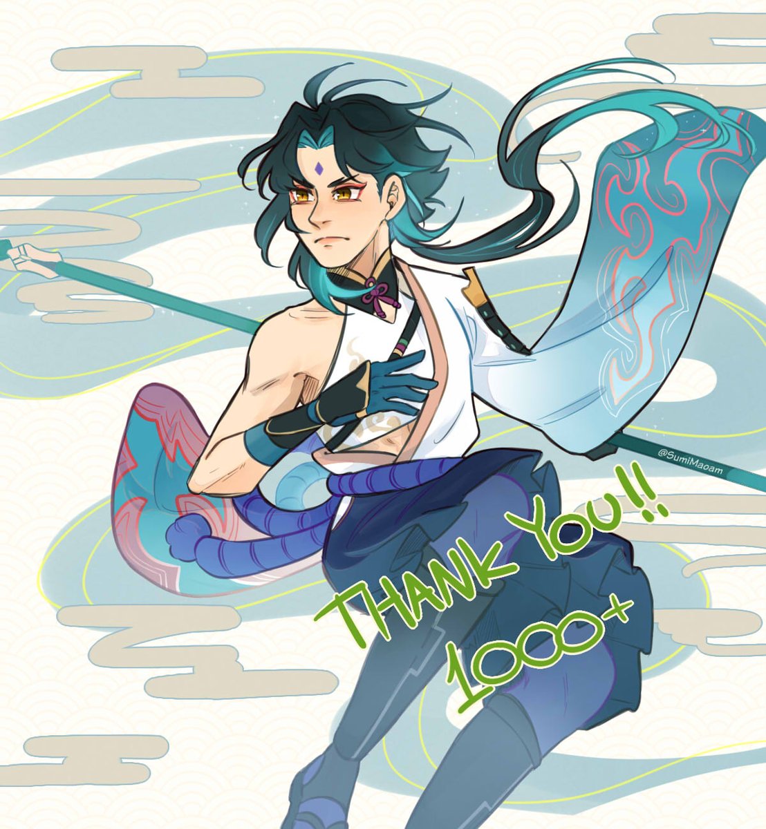 a little overdue but i wanted to say thanks for 1k+ follows 💕 whether u follow me for genshin or something else i hope you enjoy your stay ^^ as thanks have some xiao in inazuma inspired attire 👏 #xiao #GenshinImpact #genshinimpactfanart