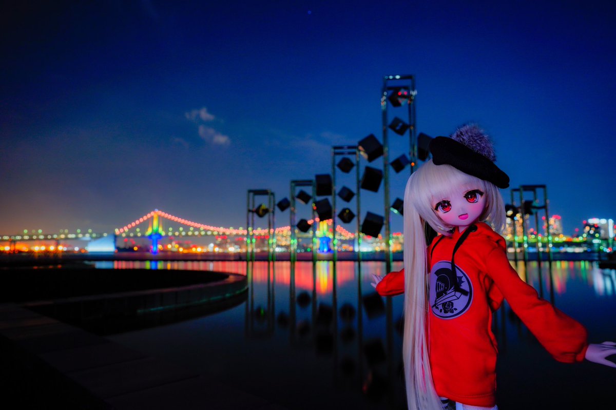 晴海埠頭、閉館するけど今後どつなるかはまだ未定らしいね この景色は無くしたくないね ちなみに風が強かったのでテール取ったりしたw #ドールと夜散歩 #MDDはいいぞ