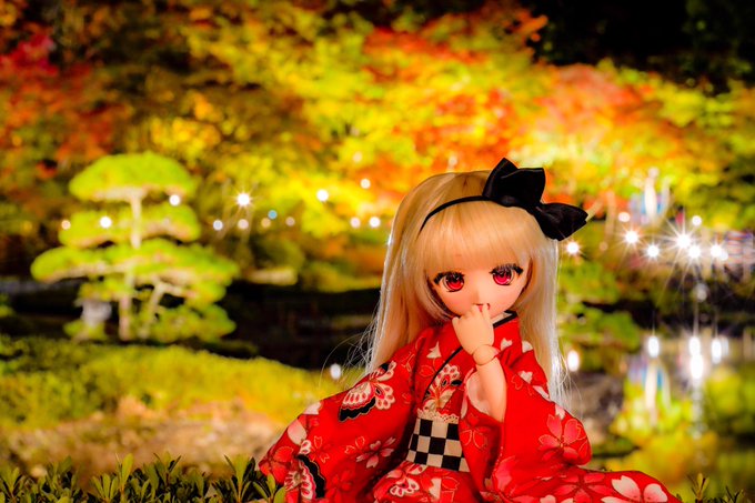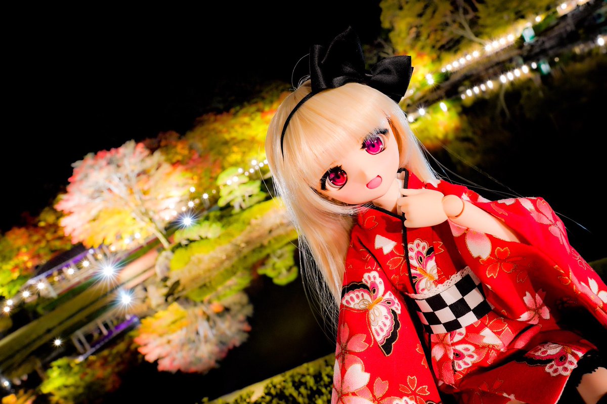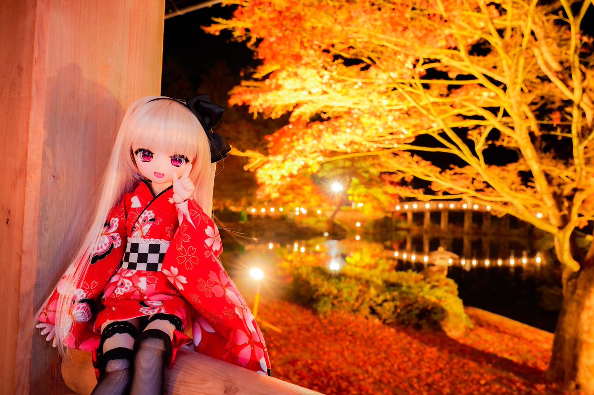 修善寺虹の郷、紅葉ライトアップに姫子ちゃんとデートに行ってきたよ! 姫子「こうよう?もみじ?難しい事は考えなくていっか!!」 #虹の郷 #MDDはいいぞ #あん娘
