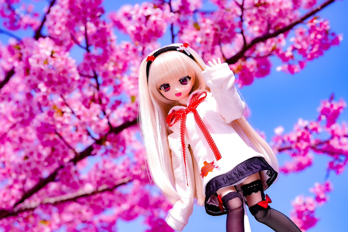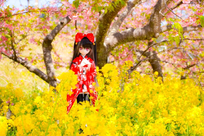 土曜に撮ってきた河津桜 暖かいせいか、メジロなど鳥がいっぱい居てまったり出来たね😌 姫子「あー、美味しそうな色っ!!」 食べちゃダメです🌸 まだ蕾があったから今週が見頃かな? #あん娘 #MDDはいいぞ