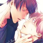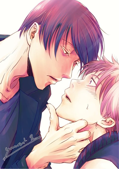 いろいろと差がある2人組 目にゴミとか入っていつものノリで見て貰ってたら顔の良さに気づいてドキっとする右と、わかっててやってる左( ˘ω˘ ) #創作BL