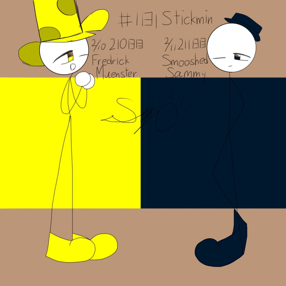 #1日1Stickmin #HenryStickminFanArt #FrederickMuenster #SmooshedSammy 210日目はFrederickさん 211日目はSammyさん シンプルに忘れてました(アホタレ)