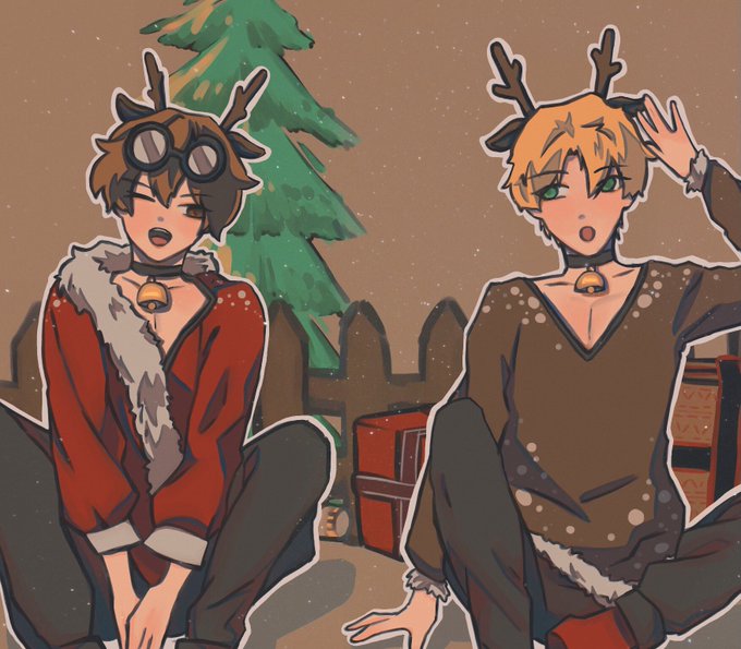 I know it’s not Christmas but I’m still feeling festive~ so here are the bois chillin ^w^ @Dream__Fanart #georgenotfound #dreamfanart #Christmas #reindeer #digital #painting
