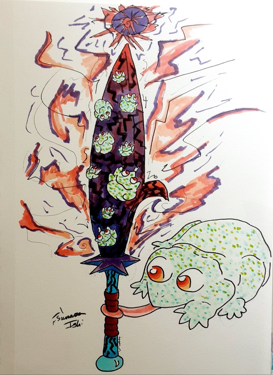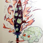 Frog sword! Because I thought it would be fun and interesting if a frog's tongue was a sword. #Swordtember #swordtember2020 #poison #Frog #bewarethetongue ...and you all now know I'm a weirdo.