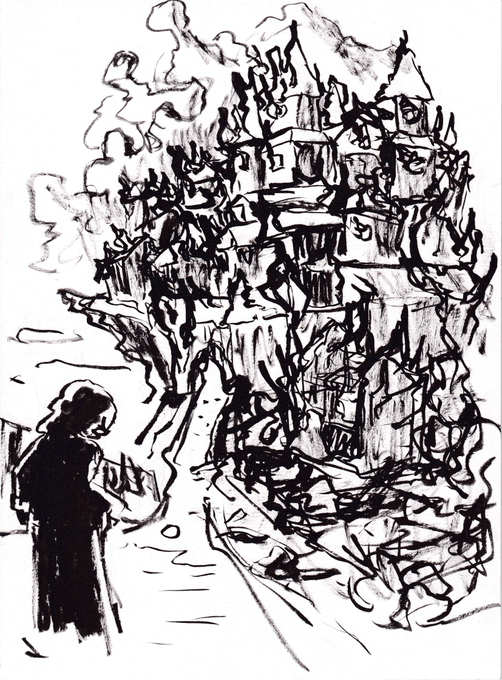 Day 7: Trip "Should only be about 20 more miles to the next town." #inktober #inktober2022 #trip #landscape