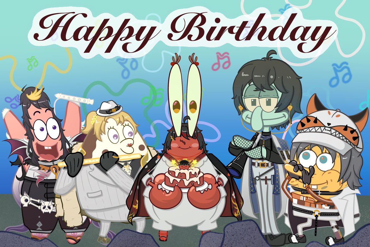 Happy Birthday mylord and love you all! ❤️🧡💛💙💜 luxiem X SpongeBob #VoxAkuma #Kindraw #Luxiem #Akurylic #Ikenography #drawluca #YaminoArt #MystaArt
