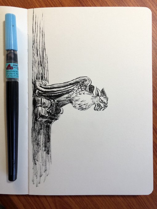 I spent the last ten years working on this year’s Inktober. Almost 4 months per drawing. Okay - that’s false 😆 I am doing the challenges with brush pen. no pencil sketch. Just look and ink. Got too mushy in the feet area. 🙄😬 #inktober2022 #gargoyle @mrjakeparker