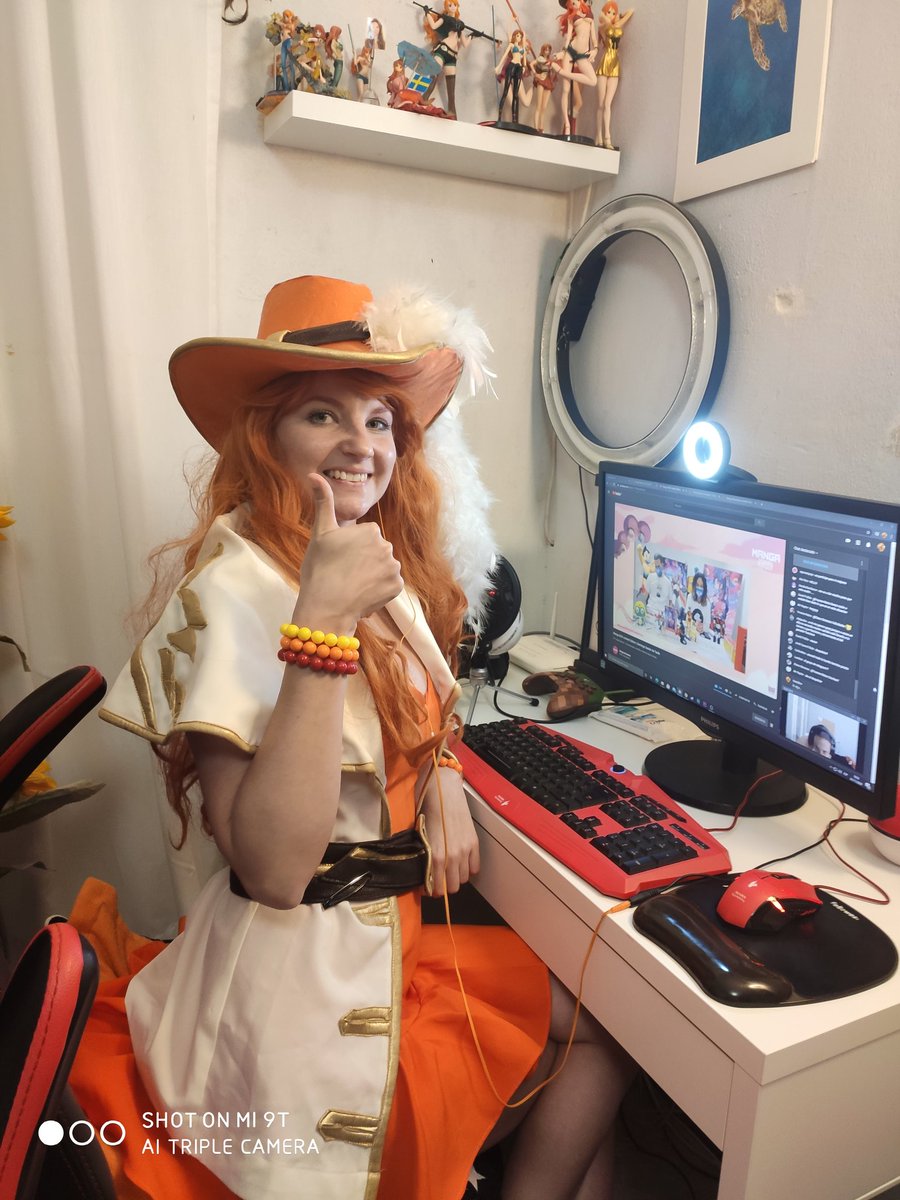 🌞🤠👍🏻Mirando Salón Del Manga Barcelona en Online!!! grabando con el Cosplay de Nami Wake Up One Piece!!! como si estoy adentro de la pantalla en el Salon Manga BCN!!!🙆🏼♀️ Que Me Encanto Muchisimooo!!!💛✨ @MANGAbc #MangaBCNLimitedEdition #cosplay #Nami #QuedateEnCasa #ONEPIECE