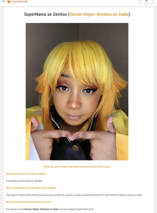 Ahh i was featured a 2nd time on @Crunchyroll's #28DaysOfBlackCosplay thread! This time with my Zenitsu cosplay. Anyone who knows me knows how much fun I have in this cosplay (along with Donald Duck 😂)