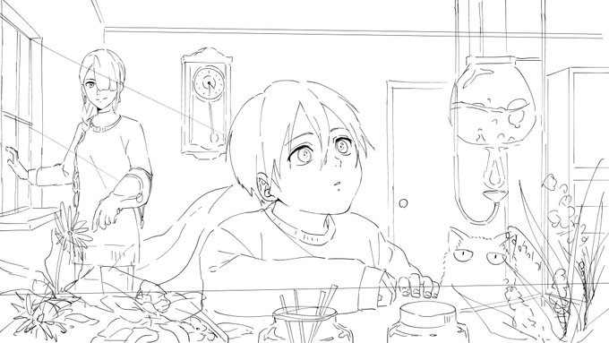3個目のは2021年6月にやろうとしたけど絵が下手すぎて描けなくて没になったヤツ。その後6ヶ月、他の簡単なカットをやりまくって2022年1月くらいに4個目のヤツを完成させた。一番制作中に画力の向上を感じたカット。 twitter.com/i/web/status/1…