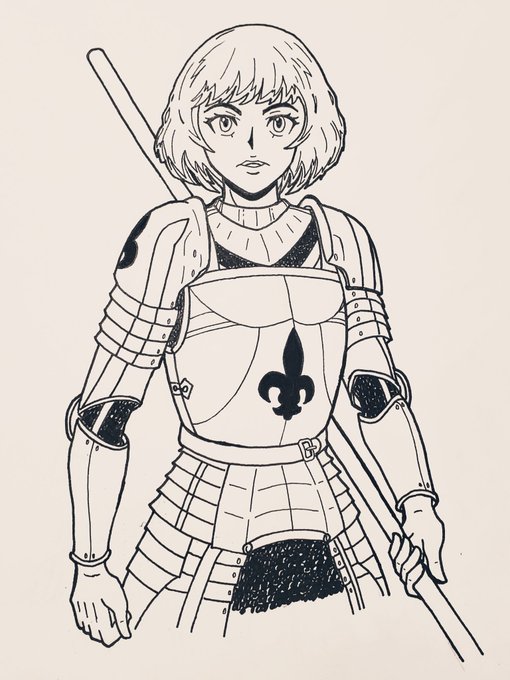 Tried my best to make a relatively historically accurate rendition of Jeanne d'Arc for today's #inktober. Did a bit of embellishing, and didn't color in the hair as I didn't have time to learn to ink darl hair yet. #Inktober2019 #inktoberday15 #inktoberlegend