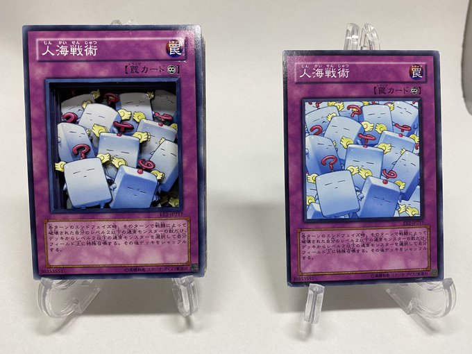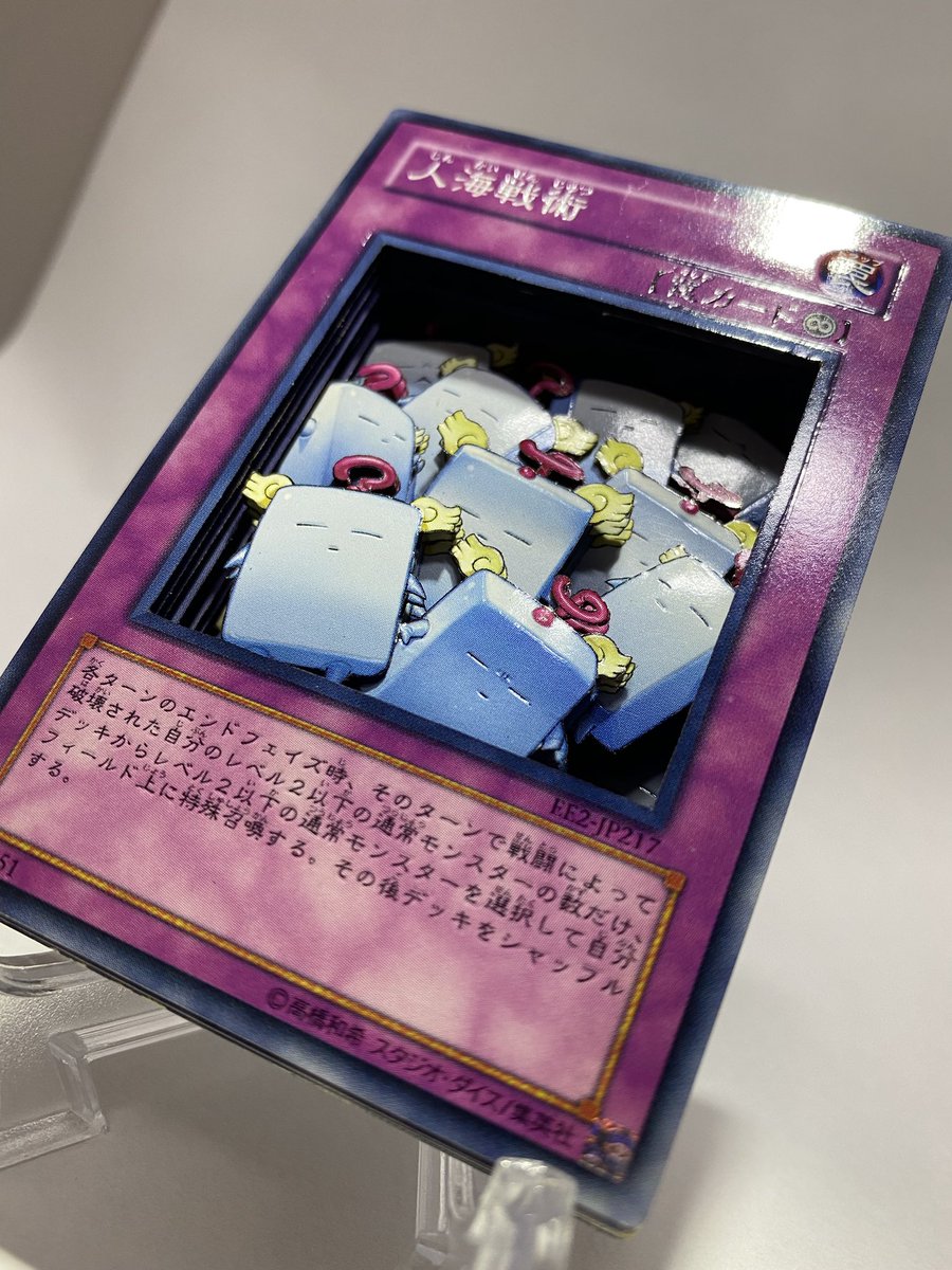 #遊戯王「人海戦術」 文字試しに彫ってみたけど、光の当て方によっていい感じなるの好きかもしれない。 #シャドーボックス
