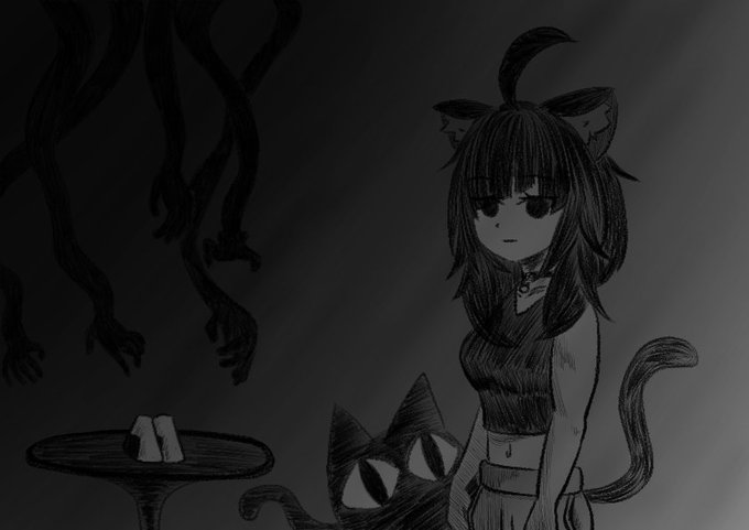 闇に潜む猫 #絵かゆ