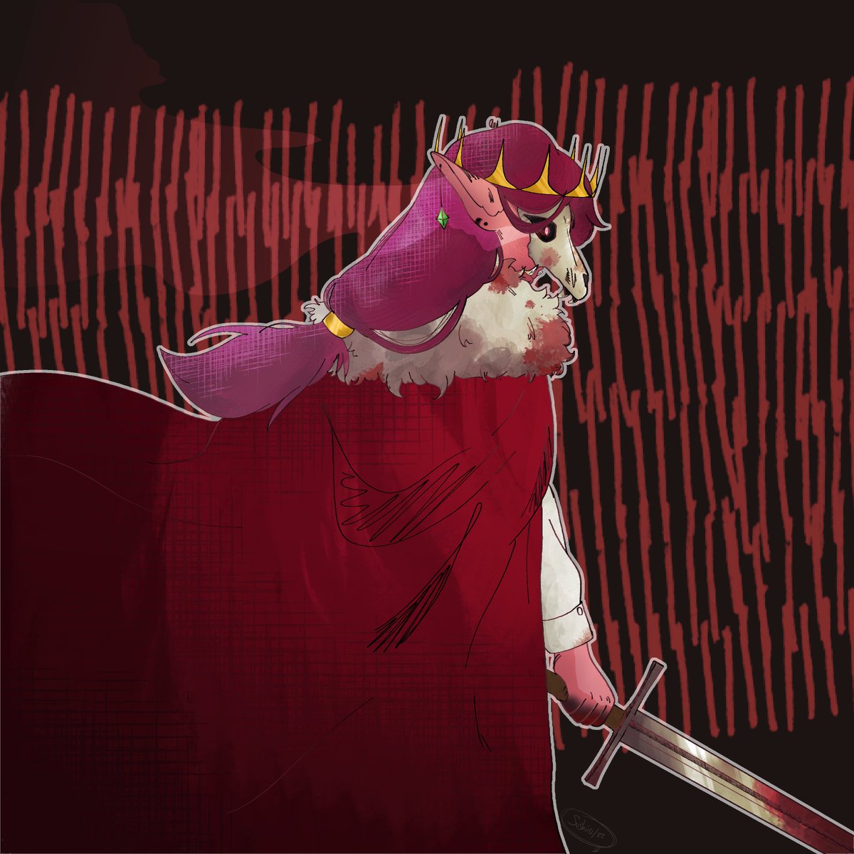 Day 1: Favourite character. Technoblade never dies, blood for the blood god. (It was meant to be just black and white but I went overboard..) #SpookyToberMonth #technofanart