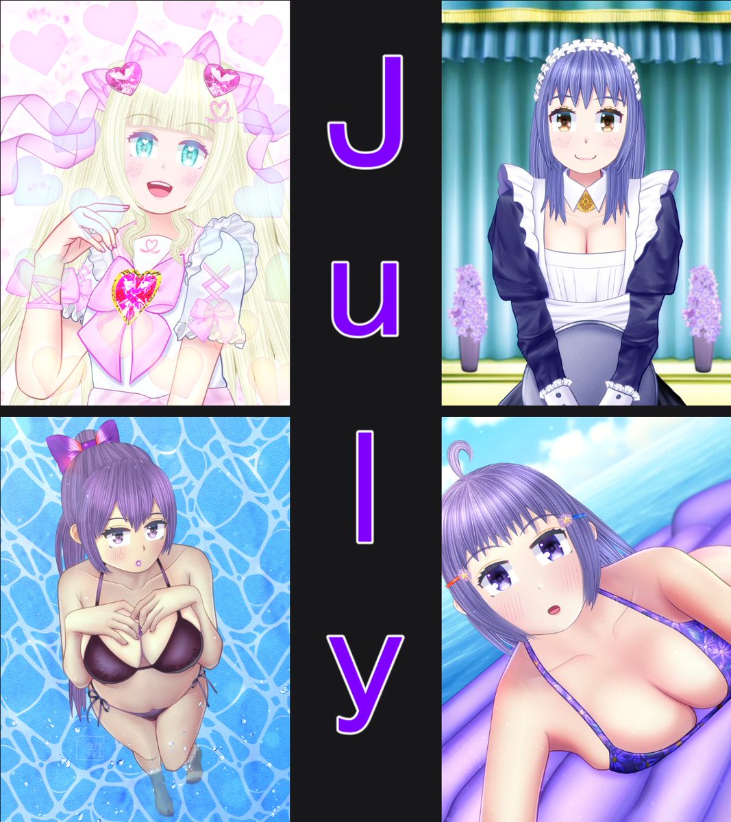 #今月描いた絵を晒そう フォロワーさんへの誕生日イラストや水着のイラストなど今月も多く描いてました。🙂 今年になってから肌の塗り方で何だかコツを掴めたような気がしてフォロワーさんが肌の質感などリプで褒めてくれて嬉しかったので来月も多くの水着イラスト描いて今年の夏も乗り越えたい…!😂