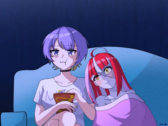Netflix and chill 📺🍿 #HoshinovArt #graveyART twitter.com/moonahoshino…