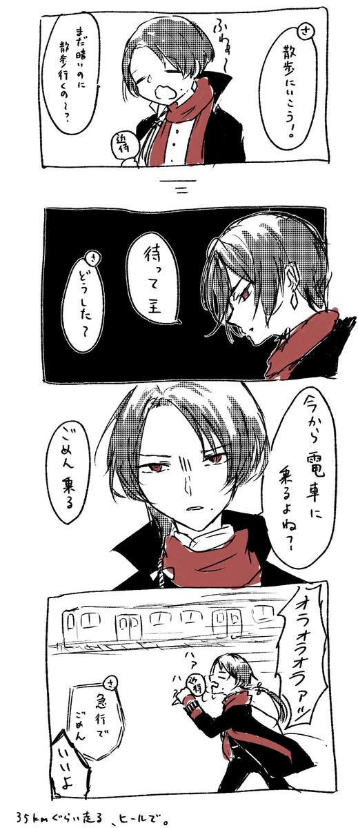 散歩(通学)に近侍ピンを持って走る加州清光が健気