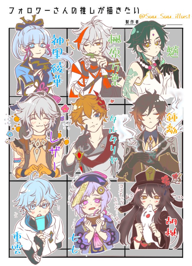 2~3ヶ月、こんな絵描いてます(他雑絵除く)❕😎✨ ♡orRTどっちも反応できればと思います🙇♀️ タグ失礼します🌸 #原神 #genshin #GenshinImapct #原神絵描きさんと繋がりたい